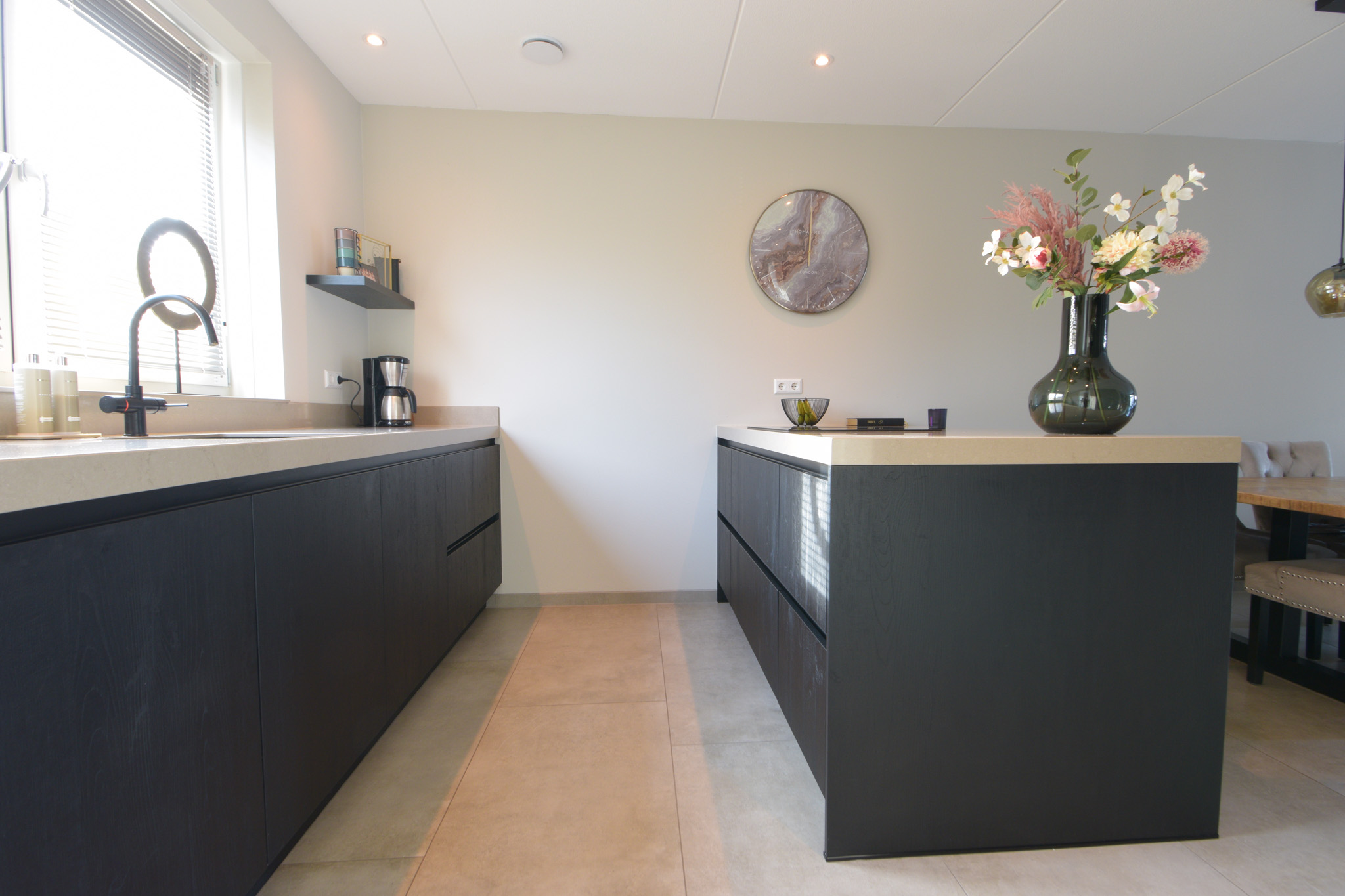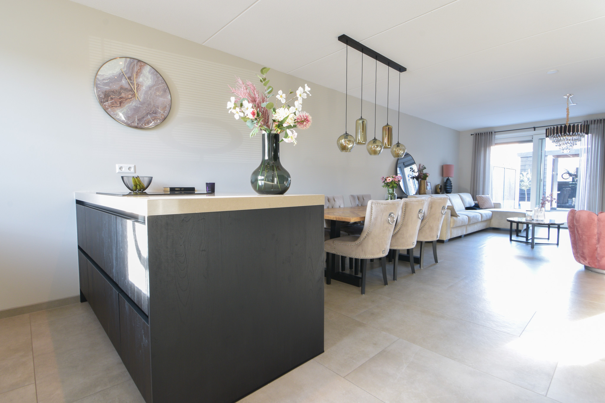 Het luxe aanrecht beschikt over een kookeiland met een (koppelbare) 4-pits inductiekookplaat met randafzuiging, twee combimagnetrons, een vaatwasser, koel-/vriescombinatie, Quooker en een fraai marmercomposieten aanrechtblad. Ook de badkamer is een plaatje, met een groot duoligbad, een aparte douche, dubbele wastafel, toilet en een grote spiegel met verlichting.