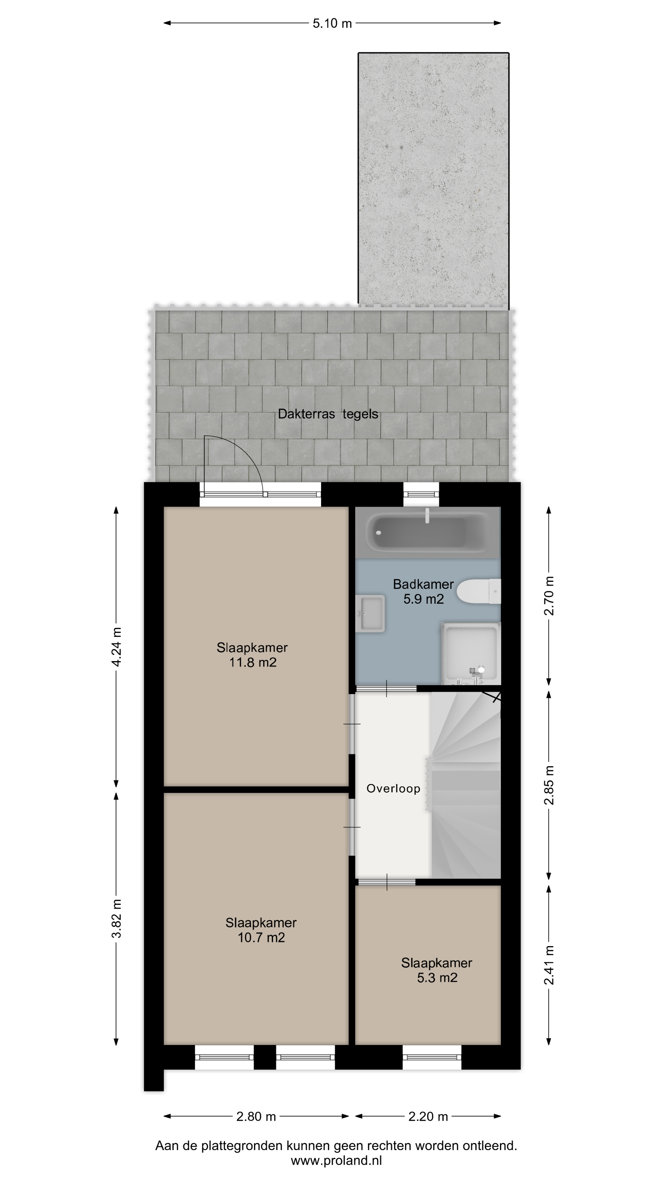 De woning beschikt momenteel over drie slaapkamers op de eerste verdieping. Indien gewenst kunnen op de tweede verdieping nog twee ruime slaapkamers worden gerealiseerd.