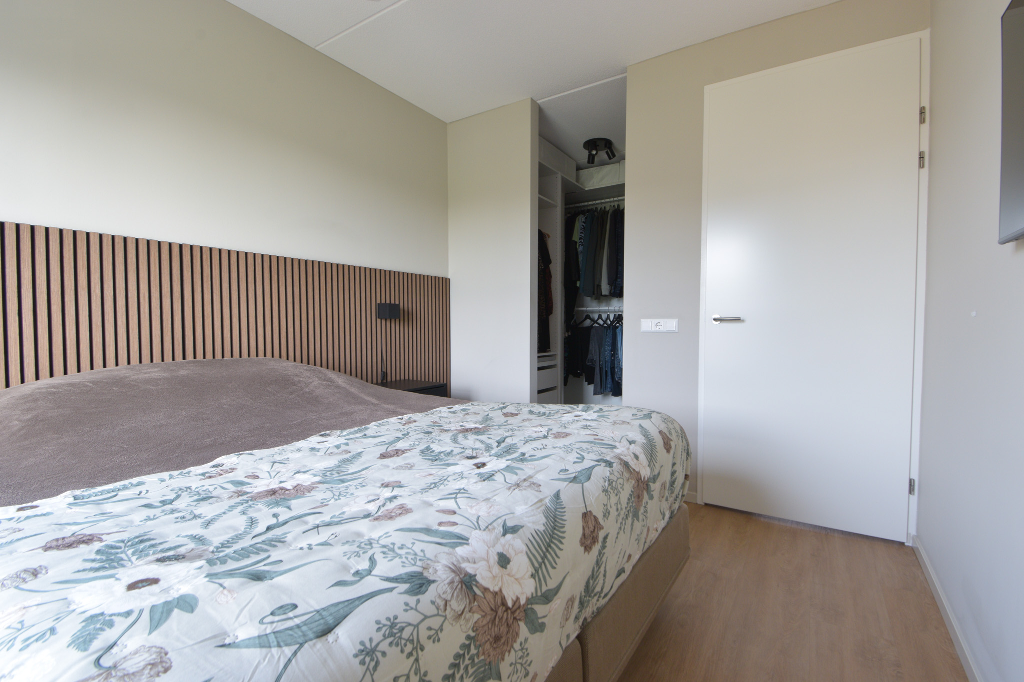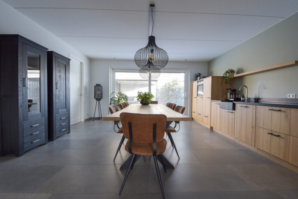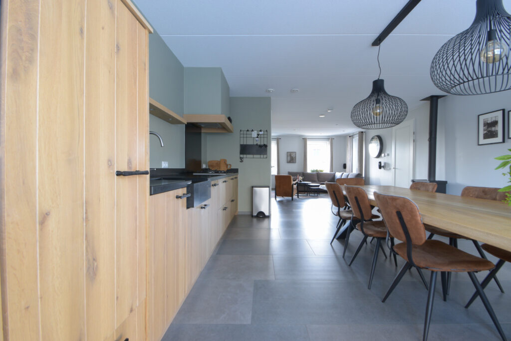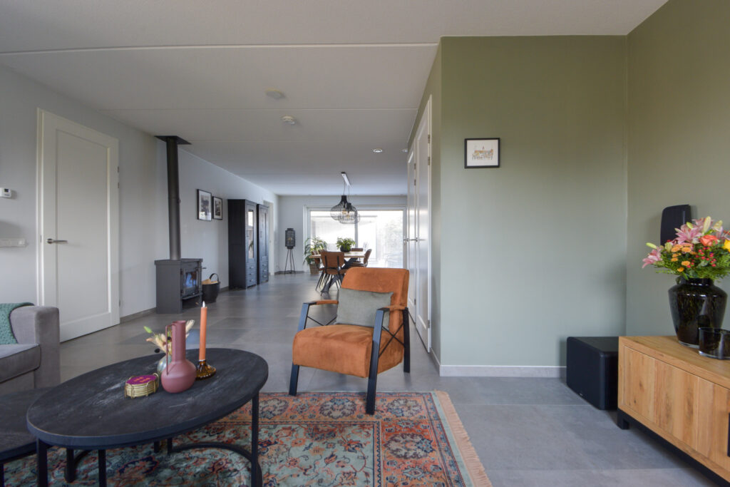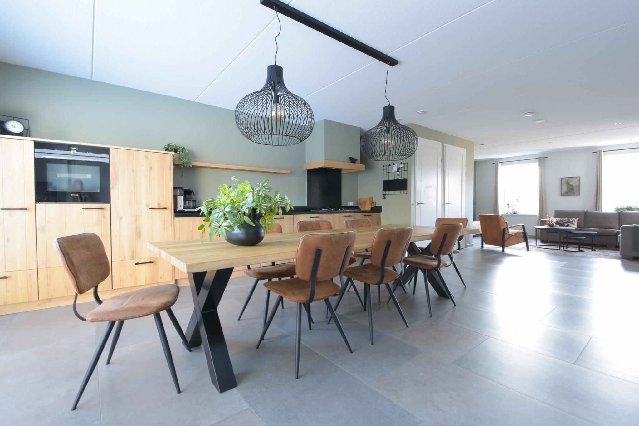 Door de aan de zijkant geplaatste entree/hal blijft er veel meer ruimte over voor de zeer riante, diepe en straatgerichte woonkamer, voorzien van vloerverwarming. Ook de leefkeuken aan de achterkant is heerlijk ruim, mede door de beslissing om tijdens de nieuwbouw de woning aan de achterzijde nog met 2,40 meter te vergroten.