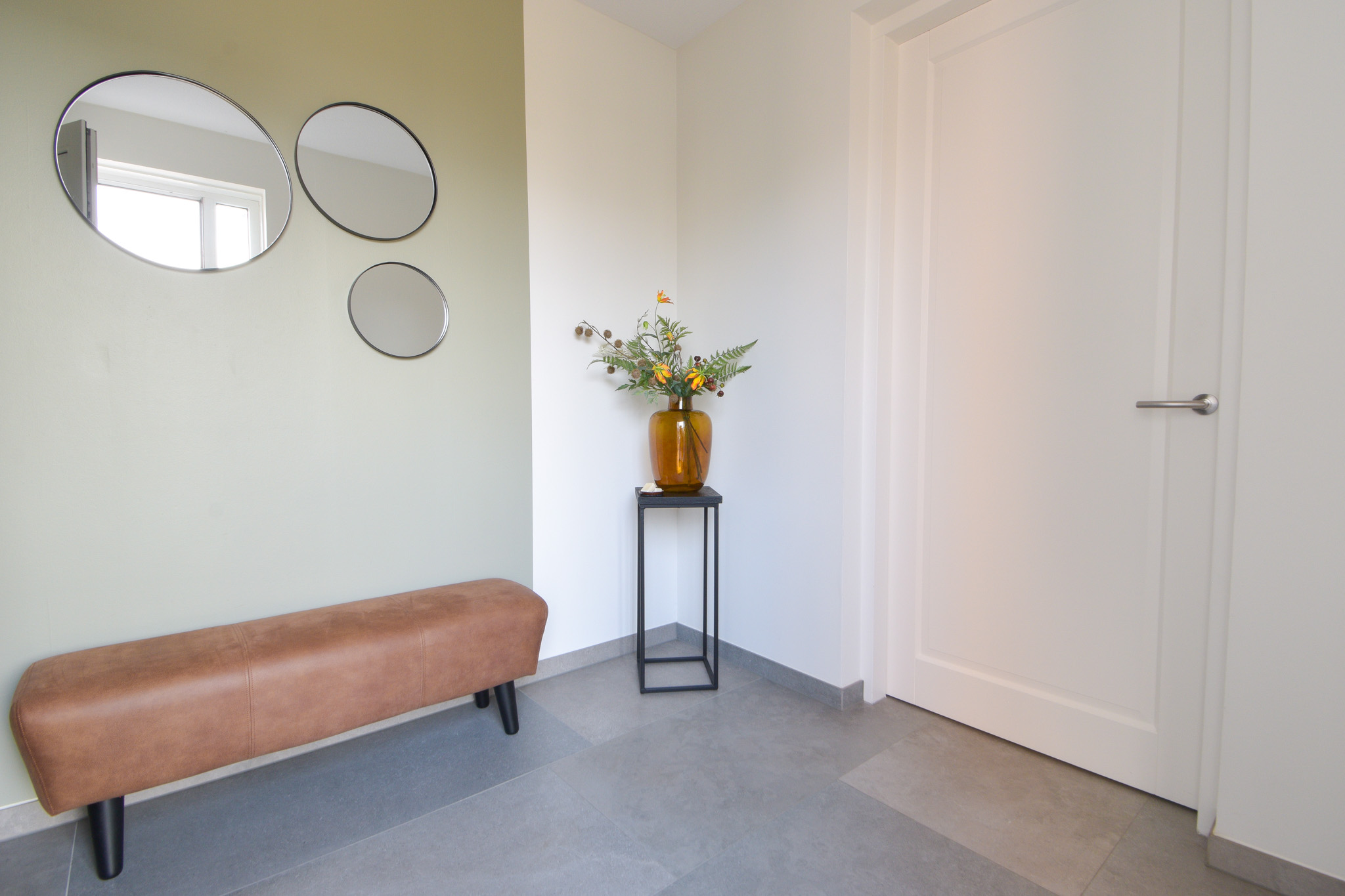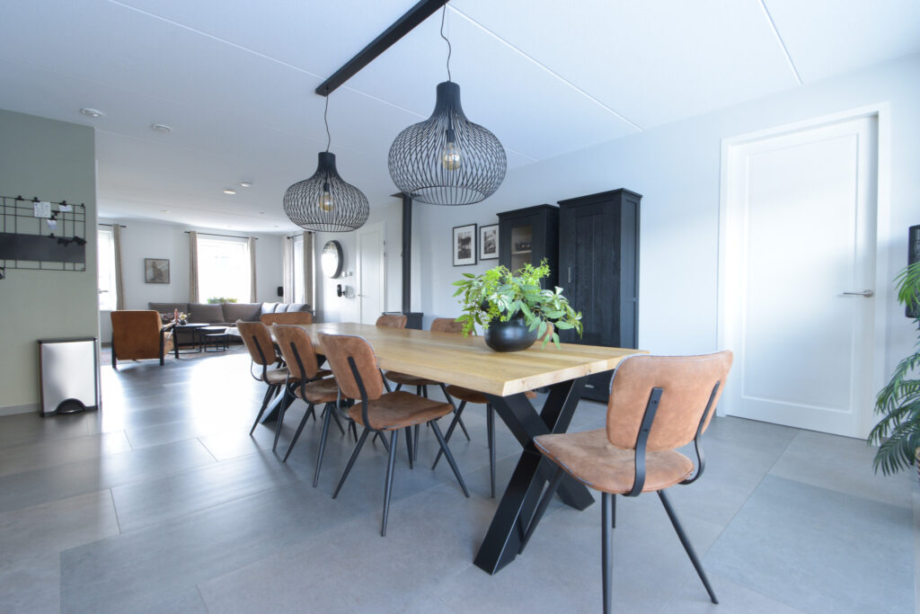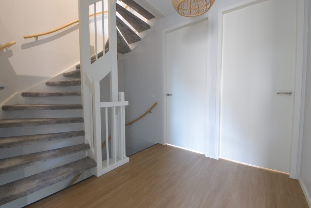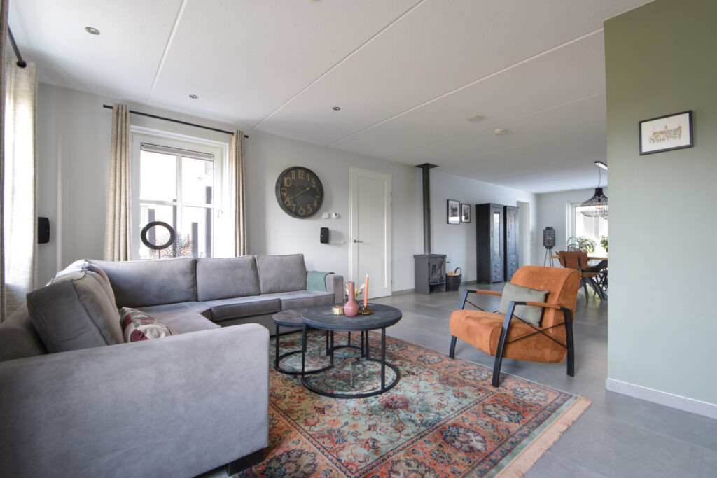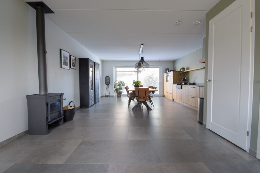 Door de aan de zijkant geplaatste entree/hal blijft er veel meer ruimte over voor de zeer riante, diepe en straatgerichte woonkamer, voorzien van vloerverwarming. Ook de leefkeuken aan de achterkant is heerlijk ruim, mede door de beslissing om tijdens de nieuwbouw de woning aan de achterzijde nog met 2,40 meter te vergroten.
