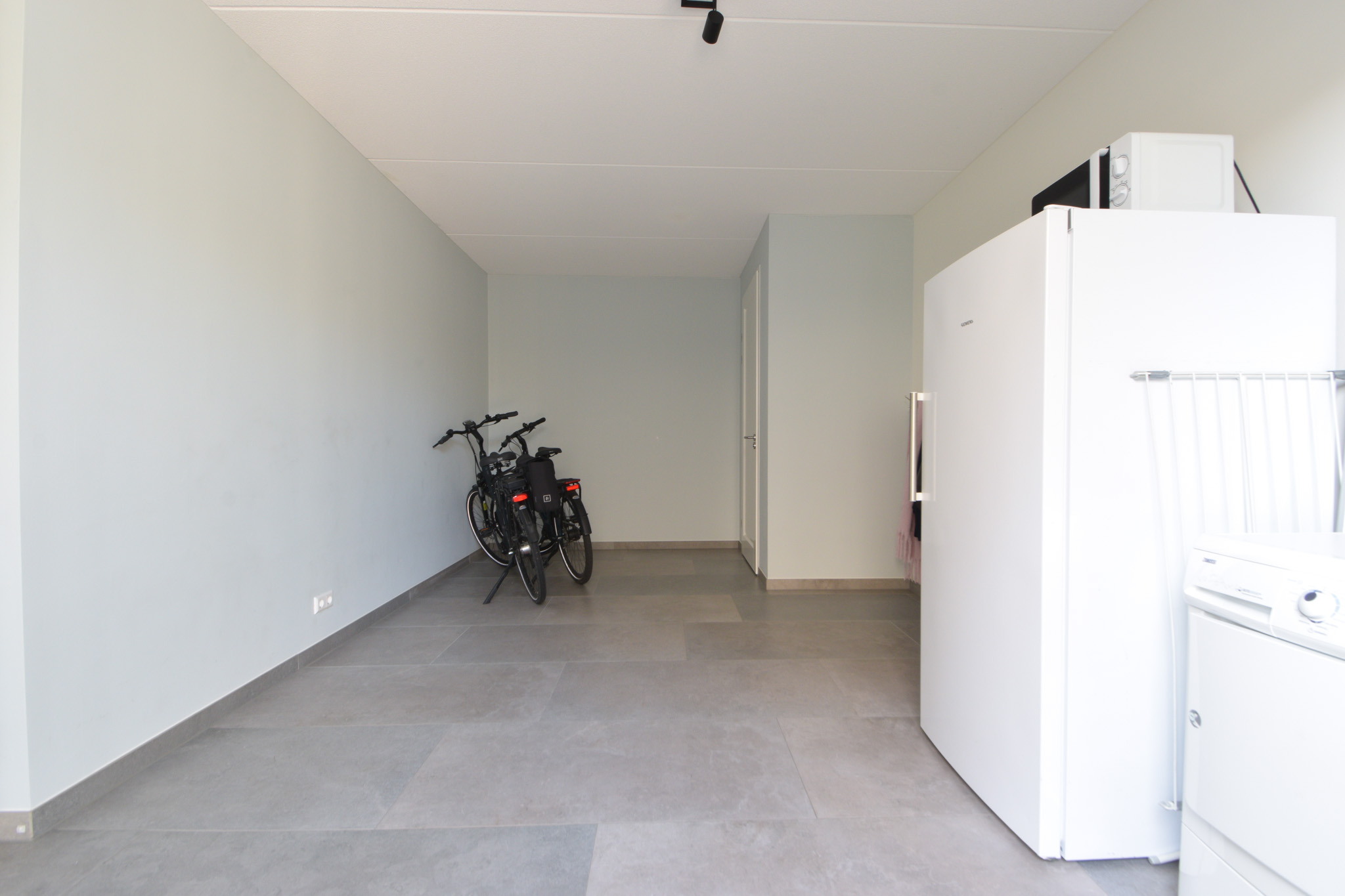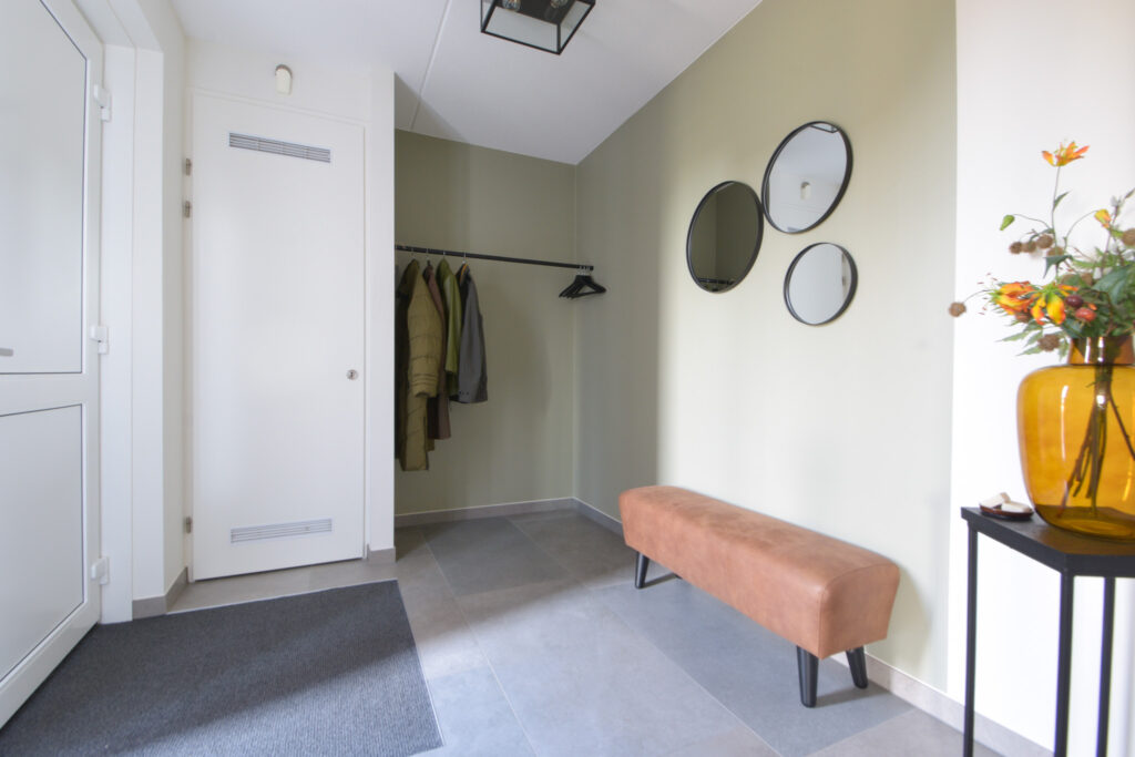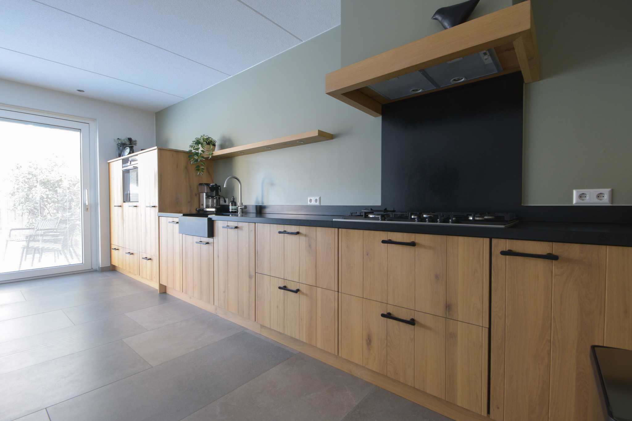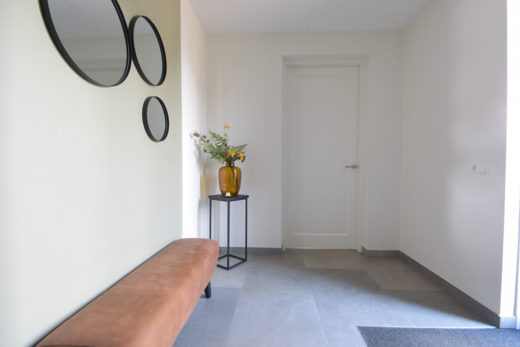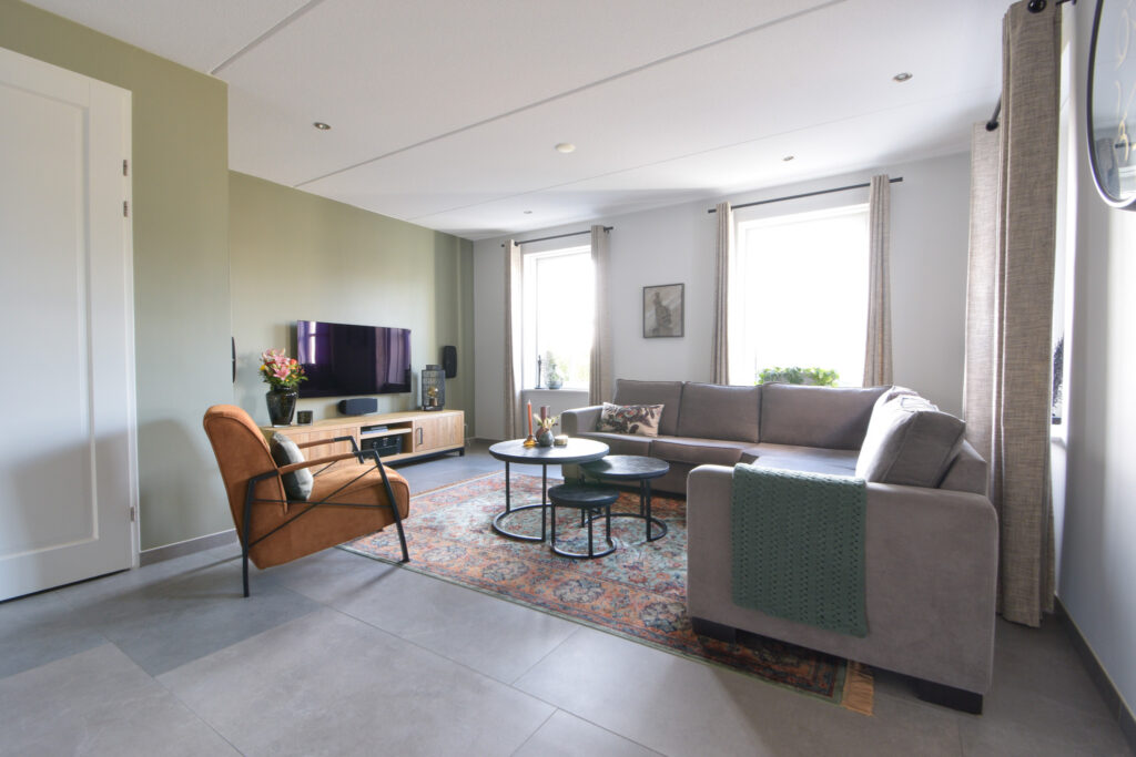 Door de aan de zijkant geplaatste entree/hal blijft er veel meer ruimte over voor de zeer riante, diepe en straatgerichte woonkamer, voorzien van vloerverwarming. Ook de leefkeuken aan de achterkant is heerlijk ruim, mede door de beslissing om tijdens de nieuwbouw de woning aan de achterzijde nog met 2,40 meter te vergroten.