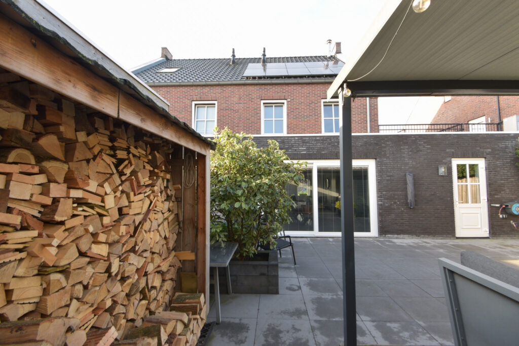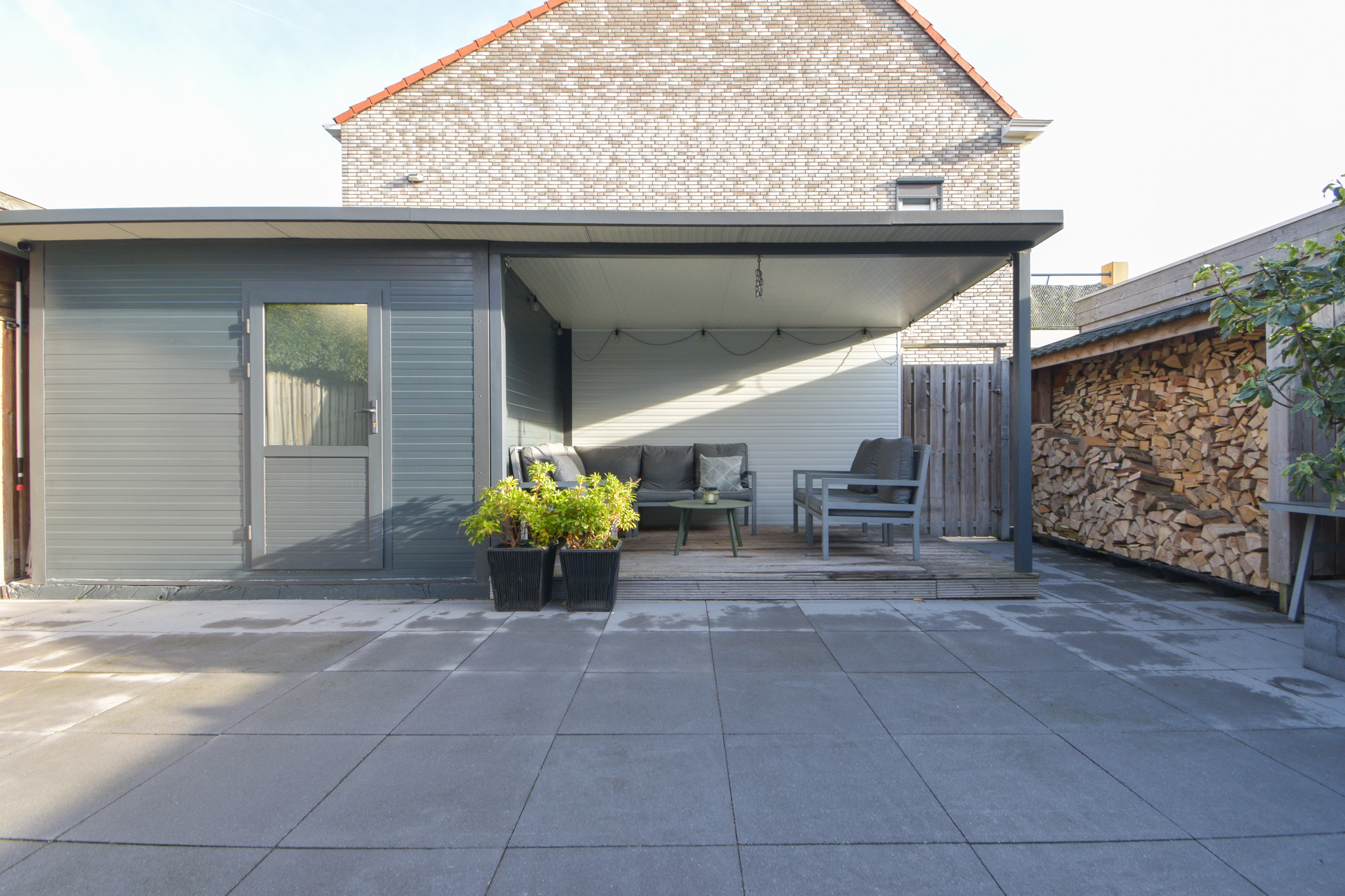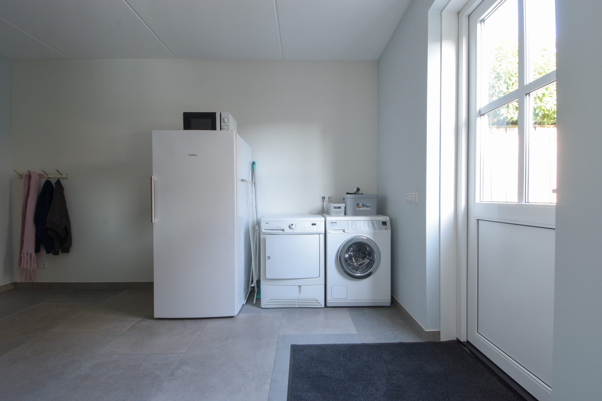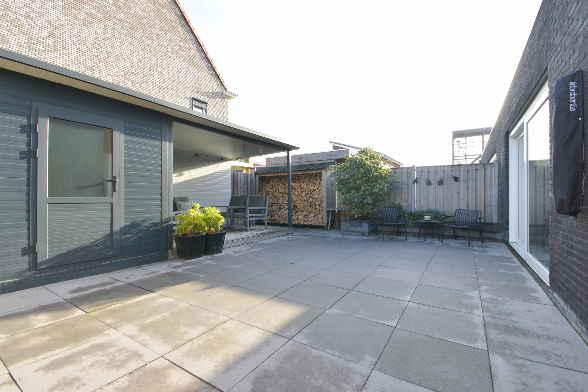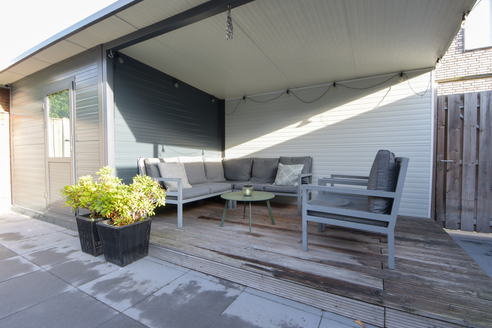 De bijkeuken aan de zijkant is zo mooi breed dat daar, indien gewenst of nodig, een prachtige slaapkamer met badkamer kan worden gerealiseerd. Vanuit de keuken geeft een grote glazen schuifpui (met in het glas geïntegreerde zonwering) toegang tot de brede en ruime achterstraat, voorzien van een fraaie houten schuur met loungeoverkapping.