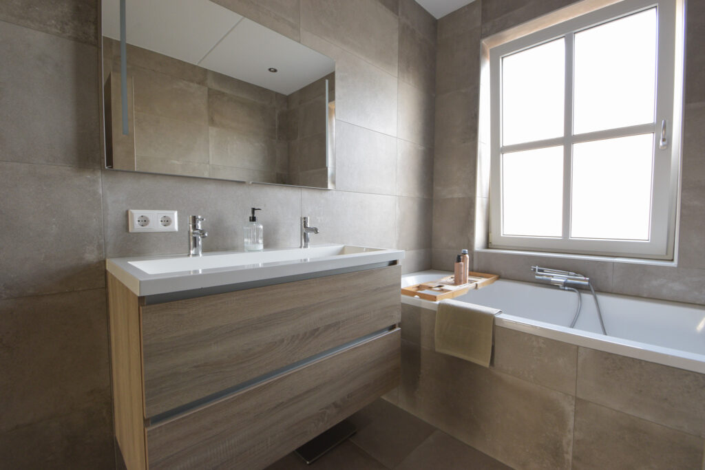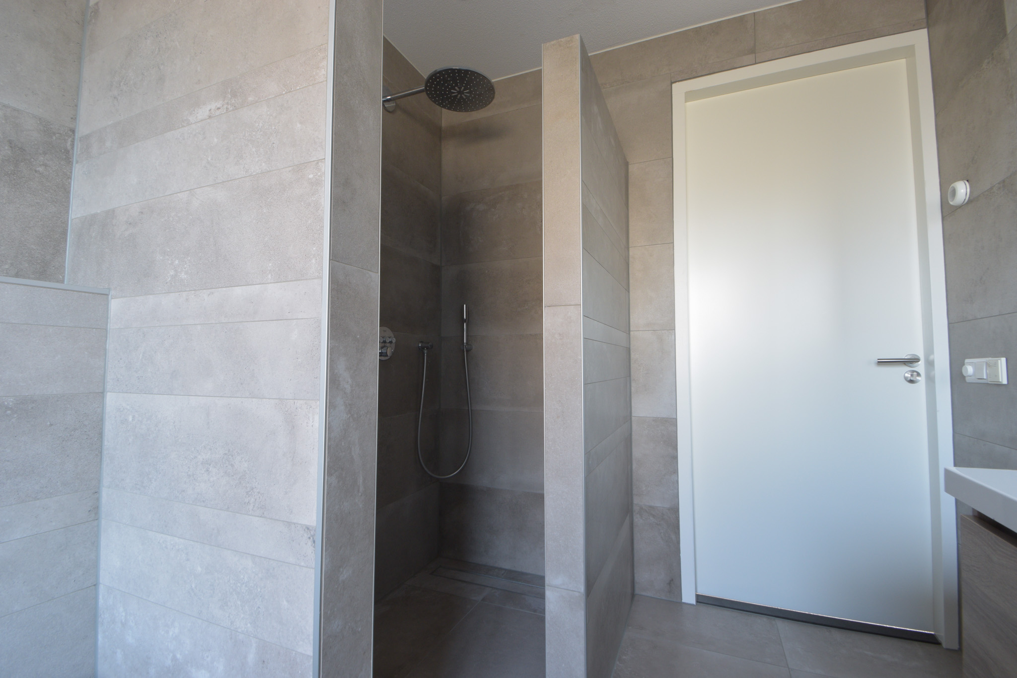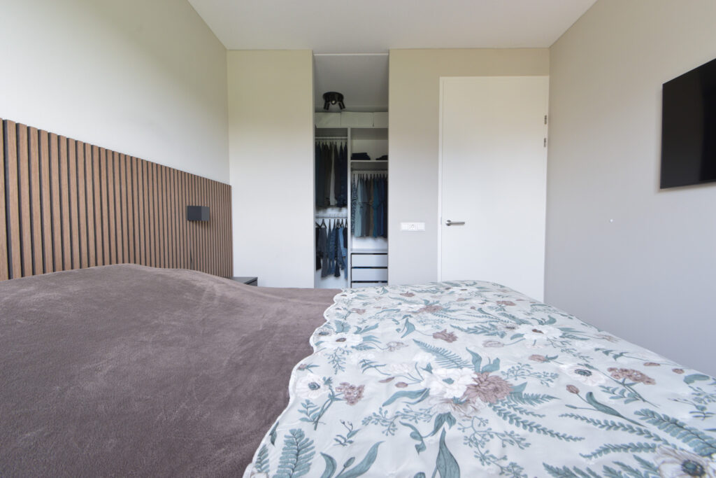 Op de eerste verdieping bevinden zich drie ruime slaapkamers, waarvan de ouderslaapkamer beschikt over een luxe walk-in-closet en een van alle gemakken voorziene badkamer met een duoligbad, ruime douchehoek, wastafelmeubel met dubbele kranen, toilet, grote spiegel en vloerverwarming.