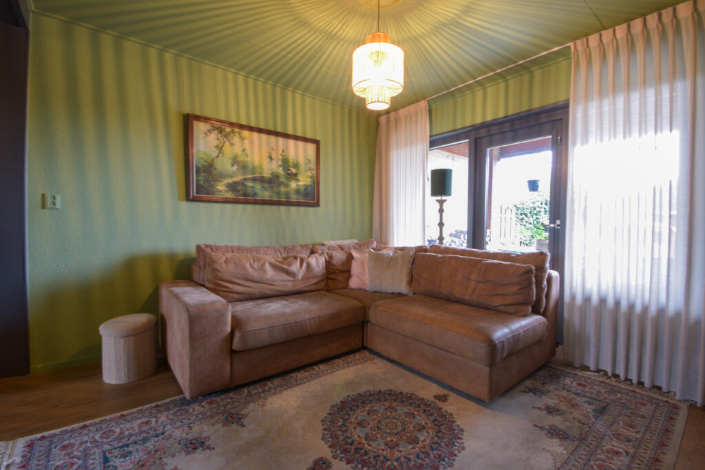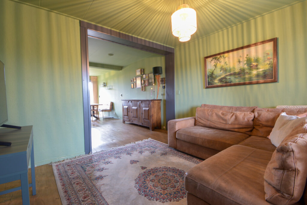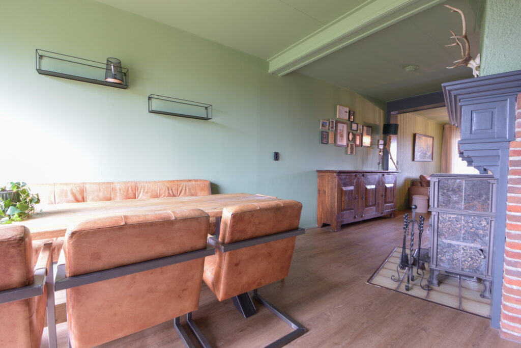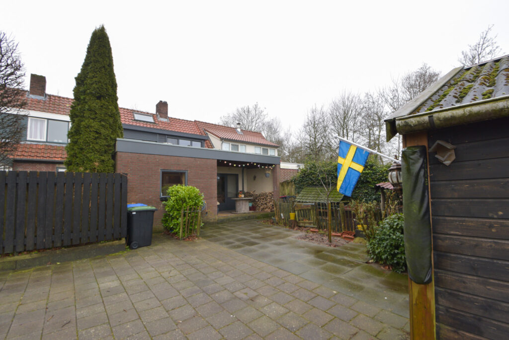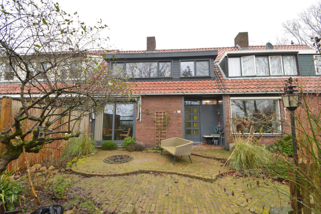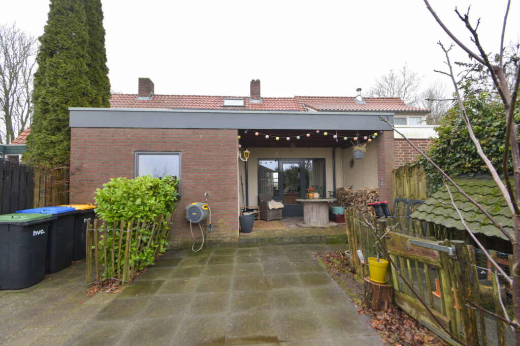 Door de uitbouw aan de achterzijde is er op de begane grond aangenaam veel leefruimte ontstaan met aansluitend aan de achtergevel nog een overkapping waar het ook bij iets minder weer al lekker vertoeven is.