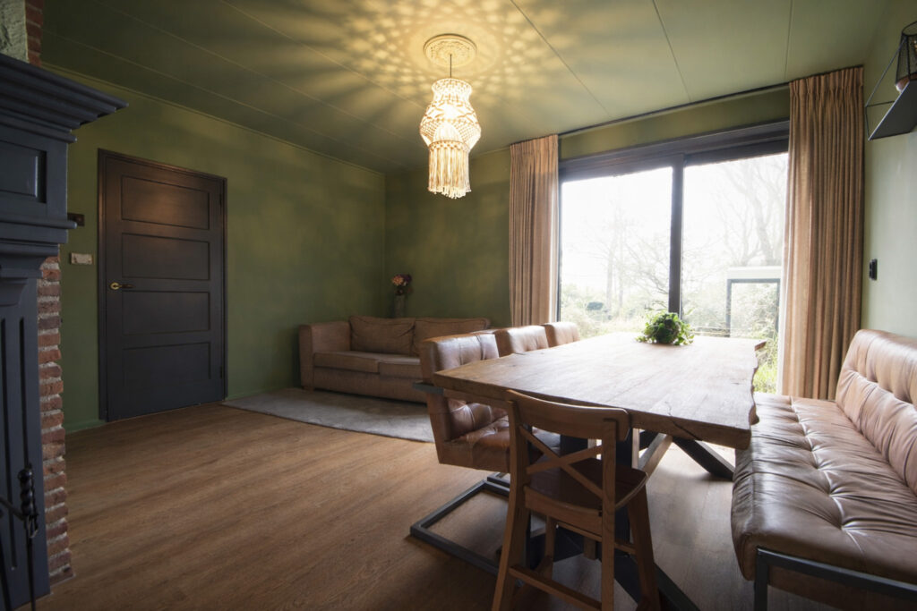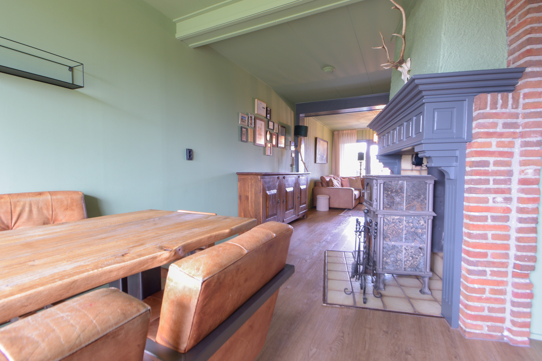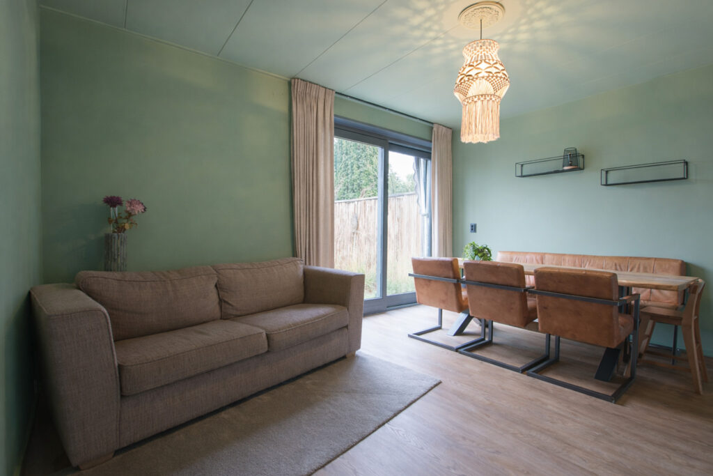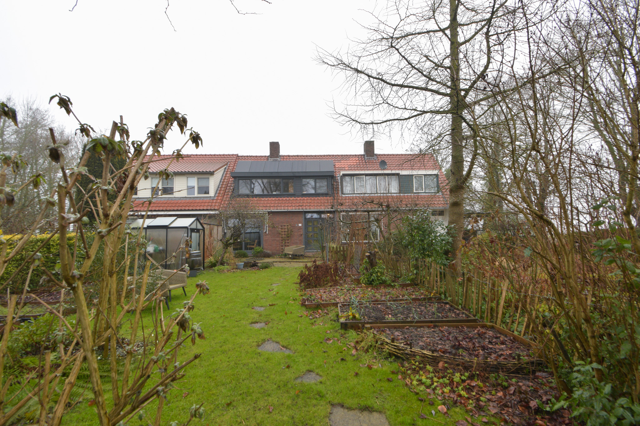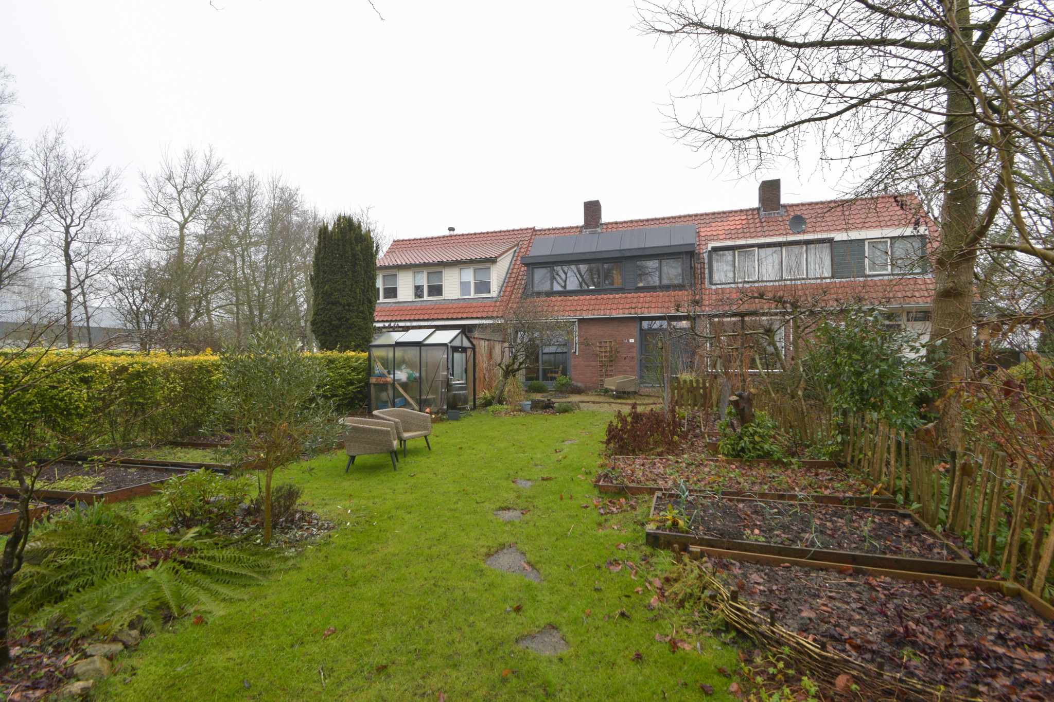 Door de uitbouw aan de achterzijde is er op de begane grond aangenaam veel leefruimte ontstaan met aansluitend aan de achtergevel nog een overkapping waar het ook bij iets minder weer al lekker vertoeven is.