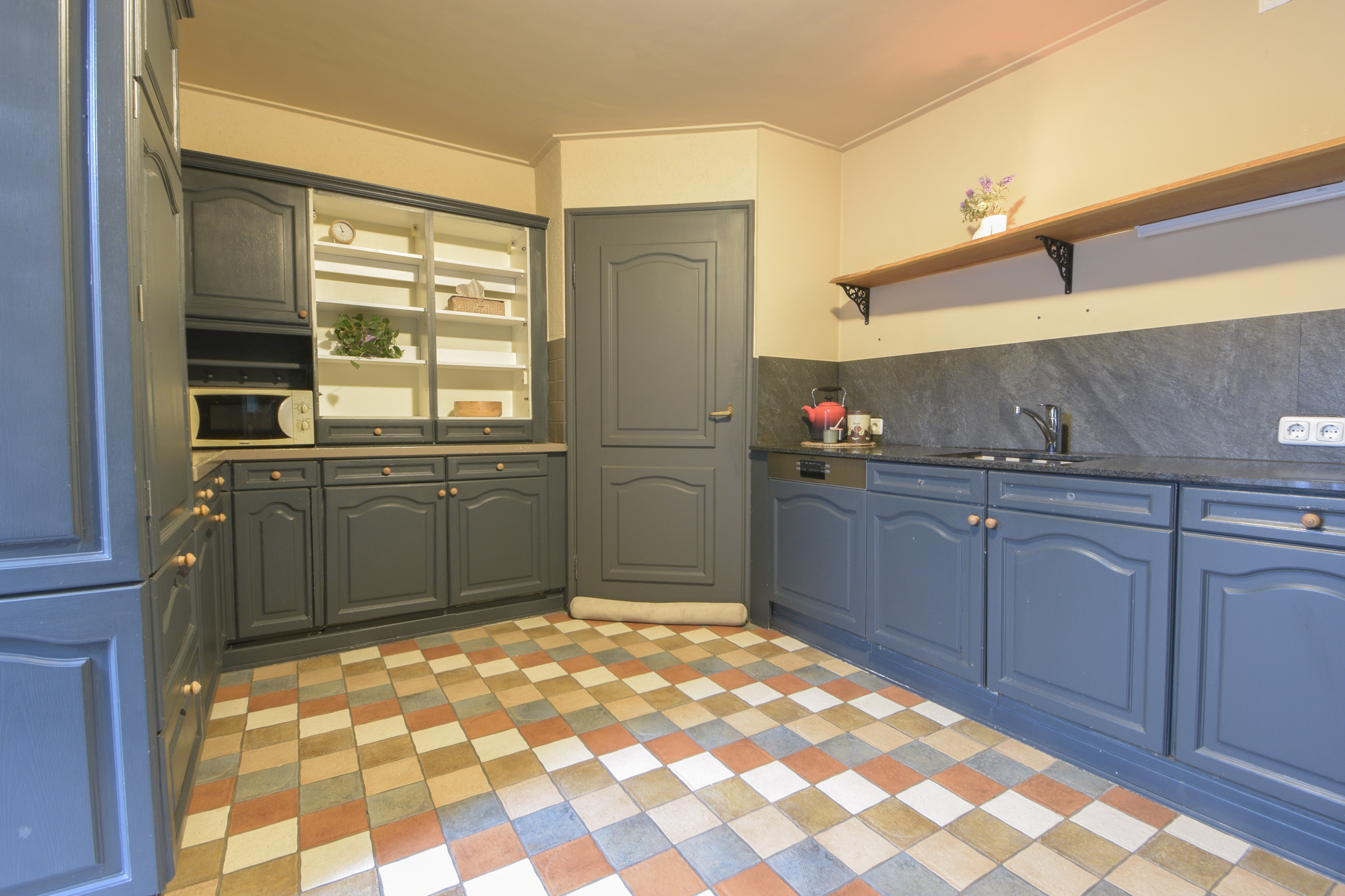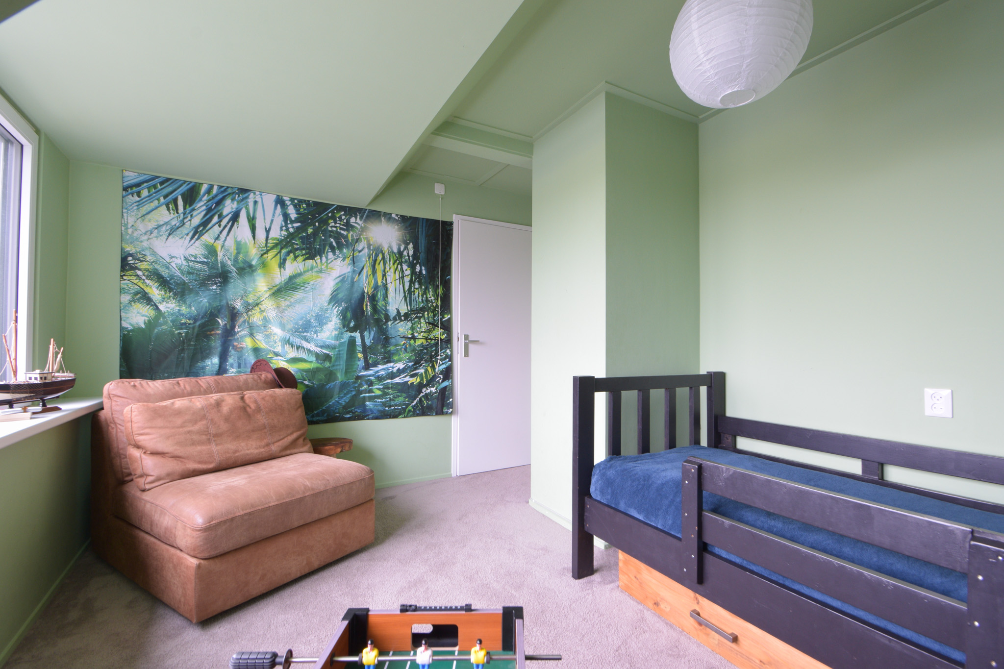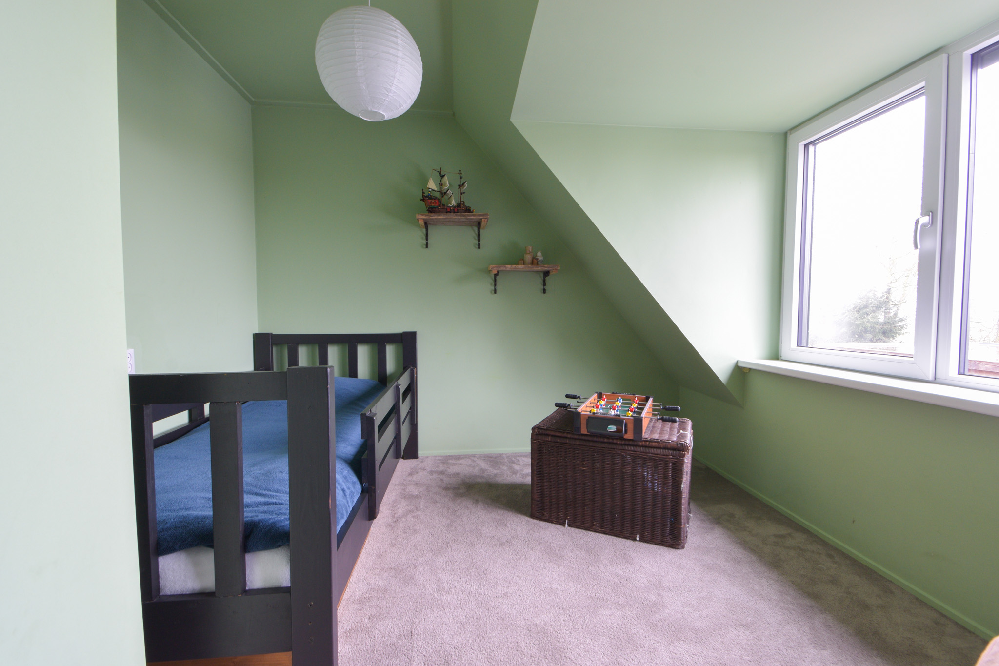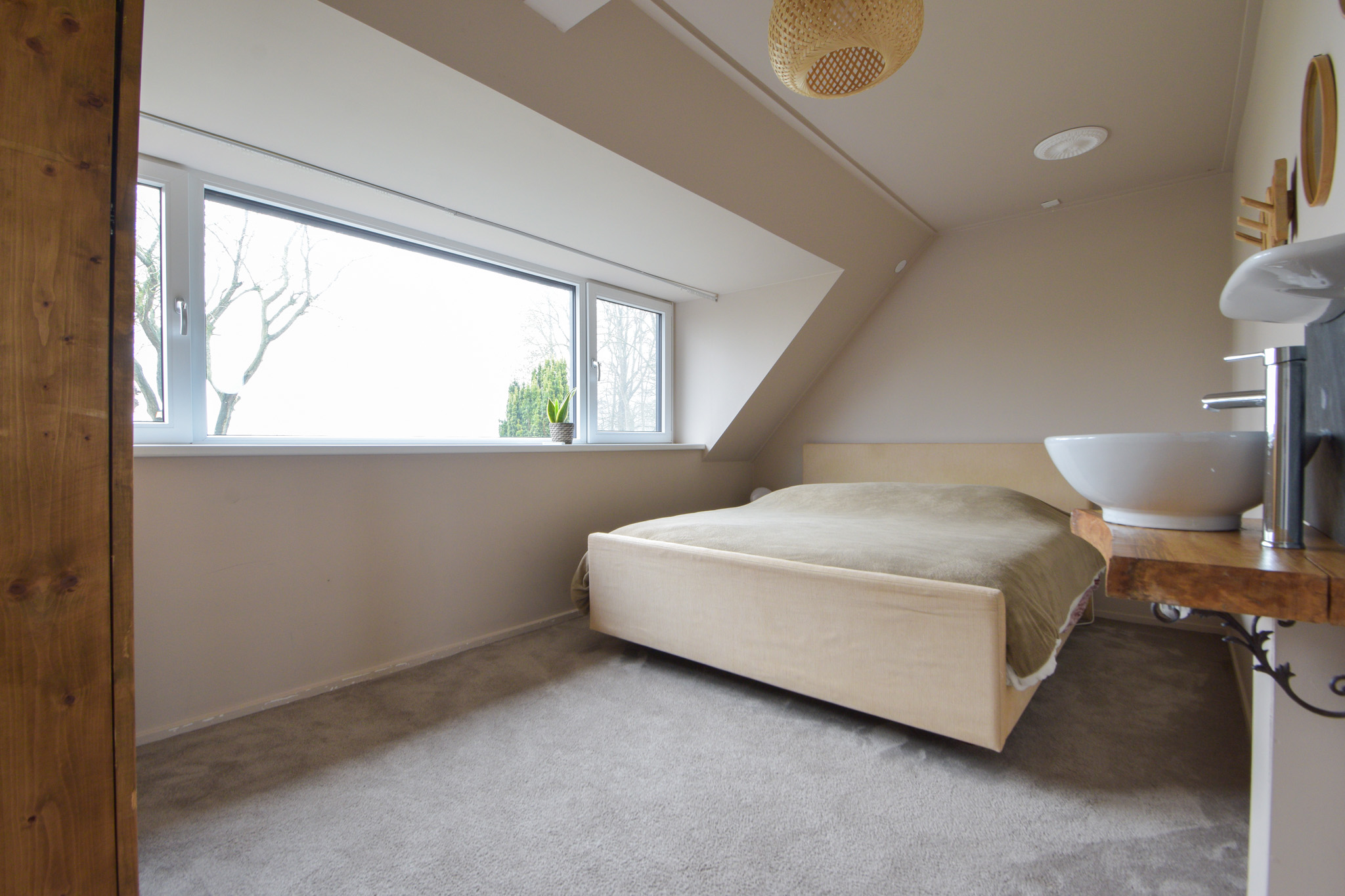 Vanaf één van die slaapkamers gaat een trapje naar de zolderverdieping waar een “kooi” is gerealiseerd als extra slaapplek.