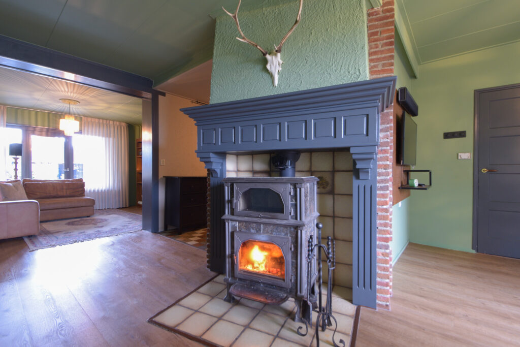 De hoofdverwarming van deze aan achterzijde uitgebouwde woning is een gezellige houtkachel met als bijverwarming infrarood vloerverwarming op de begane grond. Een cv combiketel (Intergas 2020) is wel aanwezig maar wordt (nu nog) alleen gebruikt voor badkamer.